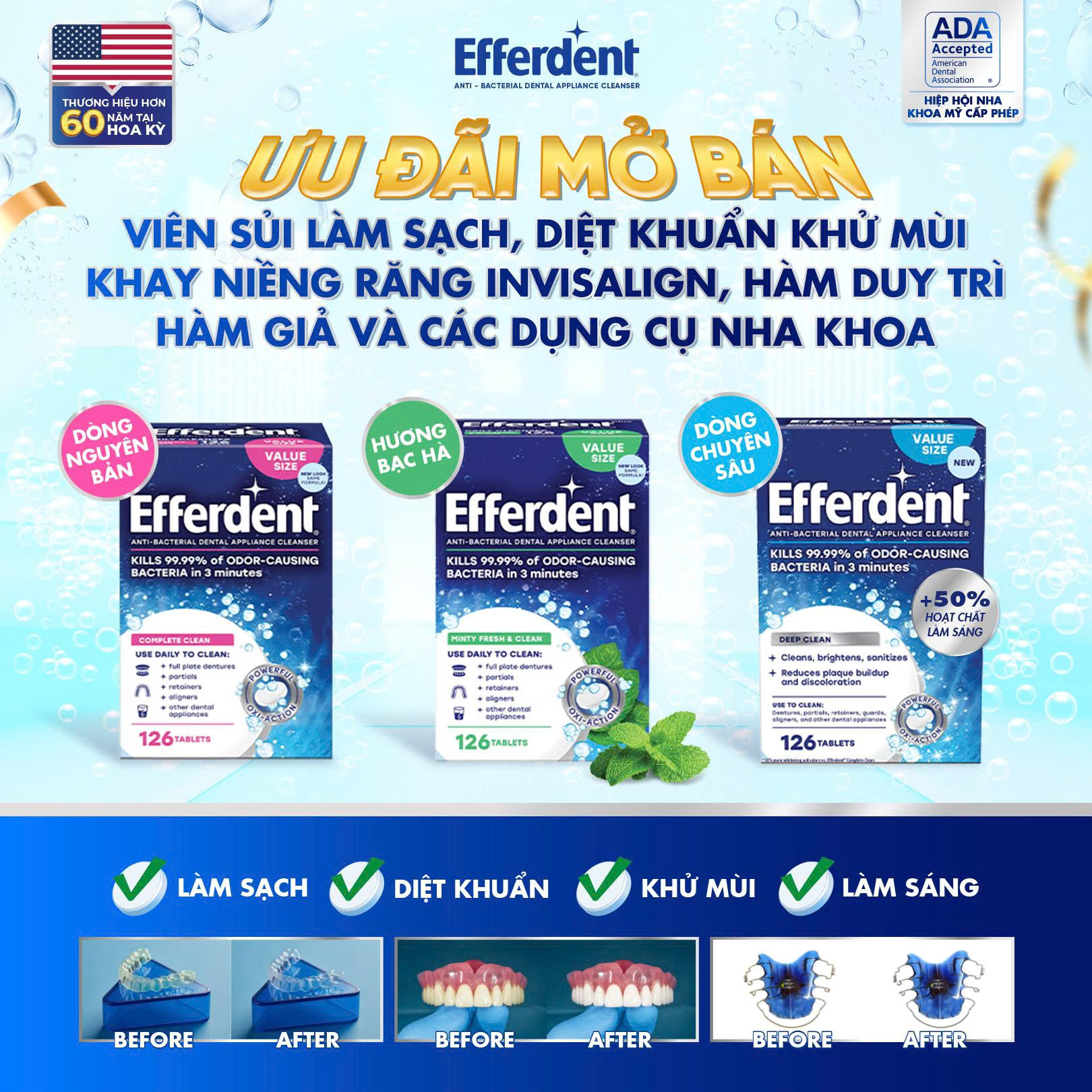 EFFERDENT CHÍNH THỨC RA MẮT TẠI VIỆT NAM – THƯƠNG HIỆU VIÊN SỦI LÀM SẠCH THIẾT BỊ NHA KHOA HÀNG ĐẦU HOA KỲ