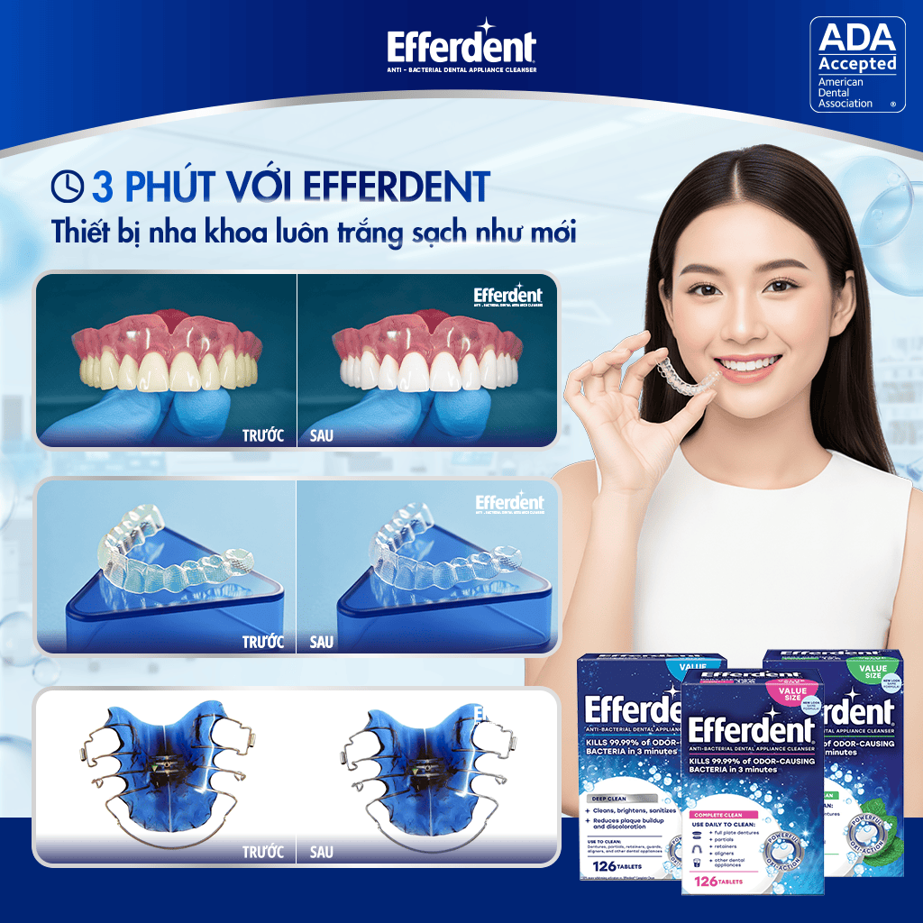 Artboard 3 copy 2 Đã xuất bản 06/08/2025 lúc 1024 × 1024 trong Viên sủi làm sạch, diệt khuẩn và khử mùi trên khay niềng răng, Invisalign, hàm duy trì, hàm giả và dụng cụ nha khoa hương bạc hà Efferdent Minty Fresh & Clean ← Trước Tiếp theo →