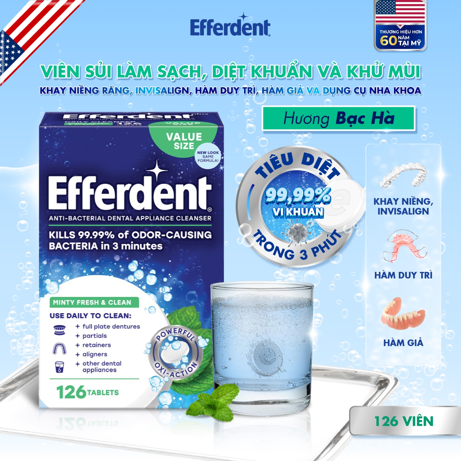 Ảnh Efferdent 2307-05 Đã xuất bản 04/09/2025 lúc 2250 × 2250 trong Viên sủi làm sạch, diệt khuẩn và khử mùi trên khay niềng răng, Invisalign, hàm duy trì, hàm giả và dụng cụ nha khoa hương bạc hà Efferdent Minty Fresh & Clean ← Trước Tiếp theo →
